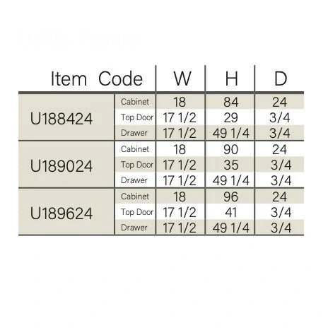 - Accessories: Door bumper, metal shelf pin, metal clips, L bracket for base cabinet.