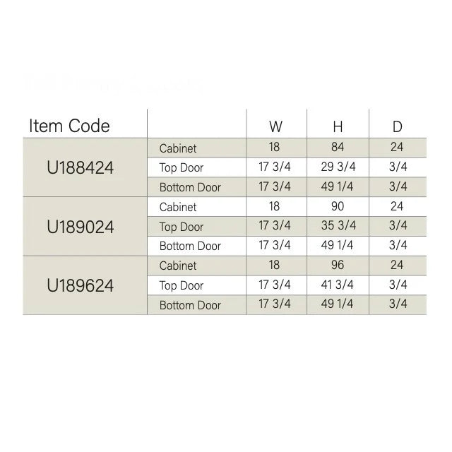 - Accessories: Door bumper, metal shelf pin, metal clips, L bracket for base cabinet.
